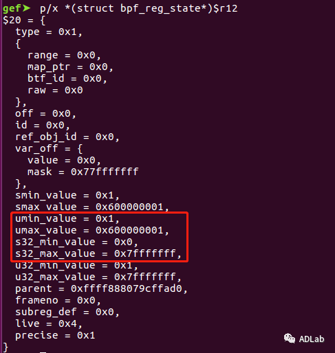 Ö´ÐÐÍêBPF_JMP_REG(BPF_JLT,BPF_REG_6,BPF_REG_5,1)Ö¸Áîºó£¬£¬£¬£¬½«R6¼Ä´æÆ÷¹æÄ£ÉèÖÃΪ0x1µ½0x600000001Ö®¼ä¡£¡£¡£¡£¡£¡£¡£R6¼Ä´æÆ÷״̬ÈçÏÂËùʾ£º