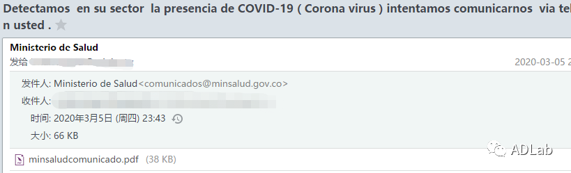 £¨3£©Í¼2-4Êǹ¥»÷Õßαװ³É¸çÂ×±ÈÑÇÎÀÉú²¿µÄ¹¥»÷ÓʼþÖ®Èý ¡£¡£¡£¡£ÓʼþÖ÷ÌâΪ¡°Detectamos  en su sector la presencia de COVID-19 ( Corona virus ) intentamos comunicarnos  via telefonica con usted¡±£¨·­ÒëºóΪ£º¡°ÎÒÃÇÔÚÄúµÄ²¿·Ö·¢Ã÷ÁËCOVID-19( Corona virus )£¬£¬£¬£¬£¬²¢ÊµÑéͨ¹ýµç»°ÓëÄúÁªÏµ¡±£© ¡£¡£¡£¡£