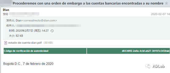 ͼ2-5Êǹ¥»÷Õßαװ³É¸çÂ×±ÈÑǹú¼Ò˰ÎñºÍº£¹Ø×ÜÊðµÄ¹¥»÷Óʼþ ¡£¡£¡£¡£ÓʼþÖ÷ÌâΪ¡°Procederemos con una orden de embargo a las cuentas bancariasencontradas a su nombre¡±£¨·­ÒëºóΪ£º¡°ÎÒÃǽ«¶ÔÒÔÄúÃûÒå·¢Ã÷µÄÒøÐÐÕË»§·¢³ö¶³½áÁ£© ¡£¡£¡£¡£