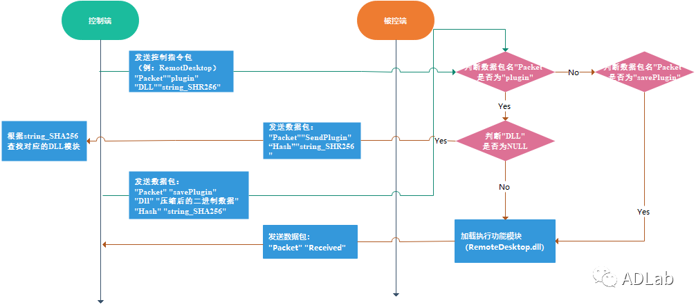 ÔÚÕë¶ÔľÂí³ÌÐò´¦Öóͷ£¿ØÖÆÏÂÁ·Ö¾ÙÐÐÏêϸÆÊÎöʱ£¬£¬£¬£¬£¬ÎÒÃÇ·¢Ã÷ÔÚ±»¿Ø¶ËľÂíµÄ¶ñÒâ´úÂëÖУ¬£¬£¬£¬£¬²¢Î´°üÀ¨ÈκÎÔ¶³ÌÖ¸ÁîµÄÏêϸʵÏÖ¹¦Ð§´úÂë ¡£¡£¡£¡£ÓÚÊÇÎÒÃÇÕë¶Ô¿ØÖƶ˺ͱ»¿Ø¶Ë×ö½øÒ»²½µÄµ÷ÊÔºÍÊÓ²ìºó£¬£¬£¬£¬£¬·¢Ã÷ËùÓиúÔ¶³Ì²Ù×÷Ïà¹ØµÄ¹¦Ð§´úÂ룬£¬£¬£¬£¬¶¼ÊÇÆ¾Ö¤Æä¹¦Ð§¾ÙÐйéÀàÇÒ±»·â×°ÔÚ²î±ðµÄDLLÄ£¿£¿£¿éÖÐ ¡£¡£¡£¡£µ±¿ØÖƶËÔÚÖ´ÐÐÔ¶³Ì²Ù×÷ʱ£¬£¬£¬£¬£¬ÔòÊ×ÏÈÓë±»¿Ø¶Ë·¢ËÍÌØ¶¨µÄÊý¾Ý°ü¾ÙÐн»»¥£¬£¬£¬£¬£¬½Ó×ÅÔÙ½«Ñ¹ËõºóµÄ¹¦Ð§Ä£¿£¿£¿é¸½¼Óµ½Êý¾Ý°üÖз¢Ë͸ø±»¿Ø¶Ë£¬£¬£¬£¬£¬Óɱ»¿Ø¶ËÒÔ²»Â䵨ÐÎʽÔÚÄÚ´æÖмÓÔØÖ´ÐУ¬£¬£¬£¬£¬À´Íê³É¿ØÖƶËÖ¸¶¨µÄ¿ØÖÆÏÂÁî ¡£¡£¡£¡£Í¨¹ý½ÓÄÉ¡°propelling in use£¬£¬£¬£¬£¬destory after use¡±µÄÊÂÇéģʽ£¬£¬£¬£¬£¬¹¥»÷Õ߼ȿÉÒÔÎÞаµØµ÷½âľÂí³ÌÐòµÄÉèÖÃÐÅÏ¢£¬£¬£¬£¬£¬ÓÖÄܽÏÓÐÓõرÜÃâȡ֤ÆÊÎöÖ°Ô±»ñÈ¡Æä½¹µã¹¥»÷Ä£¿£¿£¿é£¬£¬£¬£¬£¬ÇÒÔÚÒ»¶¨Ë®Æ½ÉϵִïÃâɱºÍÈÆ¹ýÇå¾²»úÖÆµÄЧ¹û ¡£¡£¡£¡£Í¼4-46ÊÇľÂí³ÌÐòÔÚÖ´ÐпØÖÆÏÂÁîʱ£¨ÒÔ¡°Ô¶³Ì¿ØÖÆ×ÀÃæ¡±Ö¸ÁîΪÀý£©£¬£¬£¬£¬£¬Á½Í·Ö®¼äµÄÏêϸ²Ù×÷Á÷³Ìͼ ¡£¡£¡£¡£