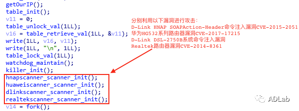 ΪÁËÕÆÎÕ¸ü¶àµÄÐÅÏ¢£¬£¬£¬£¬£¬£¬ÎÒÃǼӴóÁ˶ԸÃ×é֯ʹÓõÄÎïÁªÍø½©Ê¬µÄÍøÂ磬£¬£¬£¬£¬£¬¹ØÁª³ö1384¸ö¸Ã×é֯ʹÓõĹ¥»÷Ñù±¾£¬£¬£¬£¬£¬£¬²¢Í¨¹ýADLabÎïÁªÍø×Ô¶¯»¯ÆÊÎöƽ̨¶ÔÕâЩÑù±¾¾ÙÐÐ×Ô¶¯»¯ÆÊÎö£¬£¬£¬£¬£¬£¬½øÒ»²½¹ØÁª³öÁË100¶à¸öC&CЧÀÍÆ÷¡£¡£¡£¡£ÆÊÎöЧ¹ûÅú×¢£¬£¬£¬£¬£¬£¬¸Ã×éÖ¯ÒÔÍù¼¸Äê¾³£Ê¹ÓûªÎªHG532ϵÁзÓÉÆ÷Îó²îCVE-2017-17215¡¢°®¶ûÀ¼¹«Ë¾¡°Eir¡±µÄD1000µ÷ÖÆ½âµ÷Æ÷TR064ЧÀÍÎó²îCVE-2016-10372¡¢Realtek·ÓÉÆ÷Îó²îCVE-2014-8361¡¢D-Link Devices HNAP SOAPAction-HeaderÏÂÁî×¢ÈëÎó²îCVE-2015-2051¡¢D-Link DSL-2750B ϵͳÏÂÁî×¢ÈëÎó²îµÈÖ÷Á÷µÄÎïÁªÍø×°±¸Îó²î¹¥»÷²¢¿ØÖÆ×°±¸¡£¡£¡£¡£Í¼5ÊÇij¸öÑù±¾µÄ¹¥»÷´úÂëÆ¬¶Ï¡£¡£¡£¡£