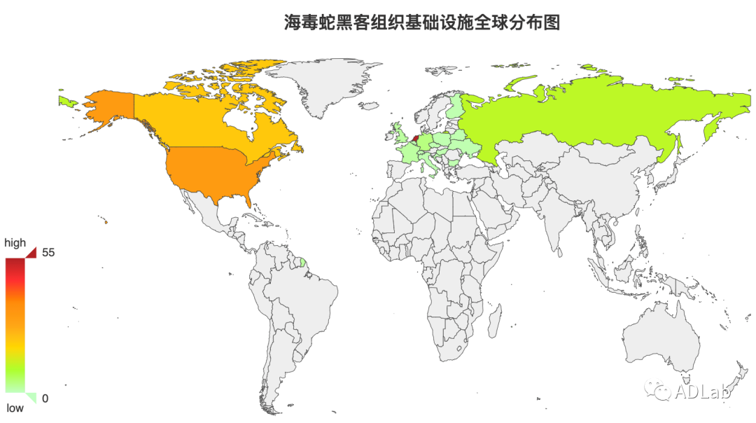 ¡°º£¶¾Éß¡±ºÚ¿Í×éÖ¯³ÖÓдó×Ú¶ñÒâÓòÃûºÍÓÃÓÚÍйܶñÒâÎļþµÄÐéÄâÖ÷»úµÈÍøÂç»ù´¡ÉèÊ©£¬£¬£¬£¬£¬£¬ÎÒÃǶÔÕÆÎյĸúڿÍ×éÖ¯³ÖÓеÄ142¸ö»ù´¡ÉèÊ©×ÊÔ´¾ÙÐÐÁ˵ØÀíλÖÃÂþÑÜͳ¼Æ£¬£¬£¬£¬£¬£¬·¢Ã÷ËüÃÇÖ÷ÒªÂþÑÜÔÚ21¸ö¹ú¼ÒºÍµØÇø£¬£¬£¬£¬£¬£¬ÆäÖÐÂþÑܽÏΪ÷缯µÄ¹ú¼ÒΪºÉÀ¼¡¢ÃÀ¹ú¡¢¼ÓÄô󡢶íÂÞ˹ºÍµÂ¹ú£¬£¬£¬£¬£¬£¬ÓÈÒÔ¡°ºÉÀ¼¡±ºÍ¡°ÃÀ¹ú¡±×îΪ÷缯£¬£¬£¬£¬£¬£¬»®·ÖÊÇ55¸öºÍ31¸ö£¬£¬£¬£¬£¬£¬Í¼9ÊÇÎÒÃÇ»æÖƵĺ£¶¾ÉߺڿÍ×éÖ¯»ù´¡ÉèʩȫÇòÂþÑÜͼ¡£¡£¡£¡£