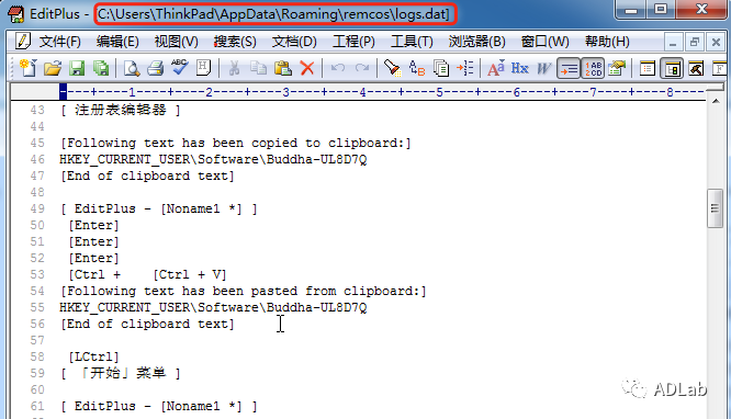 Remcos RATľÂí»áÆô¶¯¼üÅ̼ͼÏß³ÌÀ´ÇÔÈ¡ÊÜѬȾÖ÷»úµÄ¼üÅÌÊäÈëÐÅÏ¢ºÍ¼ôÇаåÊý¾Ý¡£¡£¡£¡£Ä¾Âí½«ÇÔÈ¡µÄÕâЩÐÅÏ¢ÉúÑÄÔÚÍâµØÎļþ¡°%Appdata%\remcos\logs.dat¡±ÖС£¡£¡£¡£ÔÚÒÔǰµÄÓÐЩ°æ±¾ÖÐlogs.datÎļþÊǼÓÃܵ쬣¬£¬£¬£¬£¬²»¹ýÔÚ´Ë´ÎÎÒÃÇÆÊÎöµÄÕâ¸ö°æ±¾ÖÐlog.datÎļþûÓмÓÃÜ£¬£¬£¬£¬£¬£¬Êý¾ÝµÄ¼Í¼ÃûÌúÍ֮ǰµÄ°æ±¾»ù±¾ÀàËÆ£¨Èçͼ34£©£¬£¬£¬£¬£¬£¬Ä¾ÂíºóÐø»á½«ÍøÂçµ½µÄÕâЩ¼Í¼ÈÕÖ¾·¢Ë͵½C&CЧÀÍÆ÷¡£¡£¡£¡£